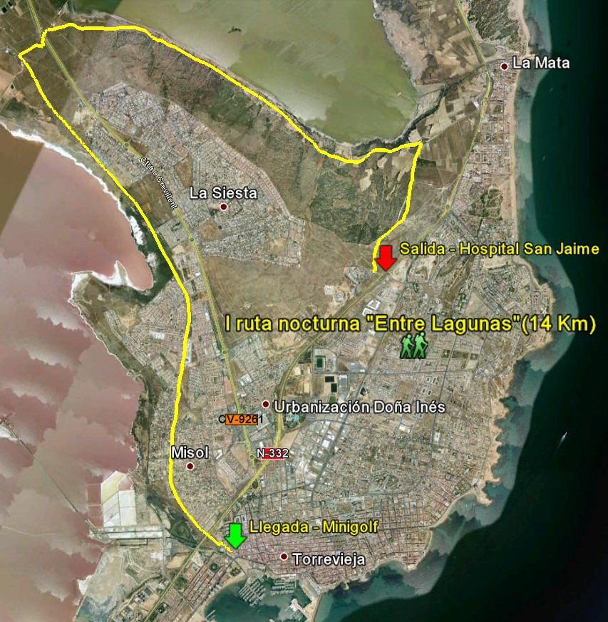 Situación: La ruta se encuentra ubicada en el municipio de Torrevieja, y enclavada entre las lagunas que forman el parque natural de